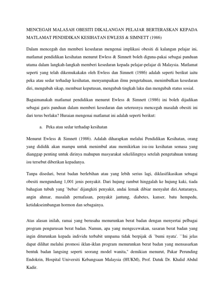 Tip Mencegah Obesiti Di Kalangan Kanak Pdf