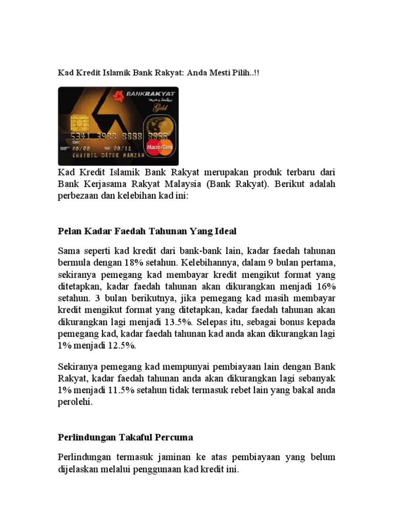 An Kad Kredit Islamik Bank Rakyat Pdf