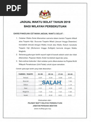 Jadual Waktu Solat Wpklptj 2019 Pdf Pdf